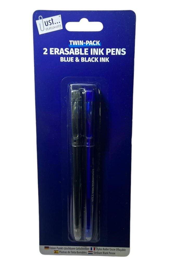 2pcs set of blue and black ink erasable pens