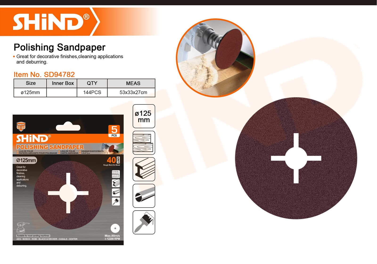 Alumina Steel Paper Polishing Sandpaper 125mm40# 94782