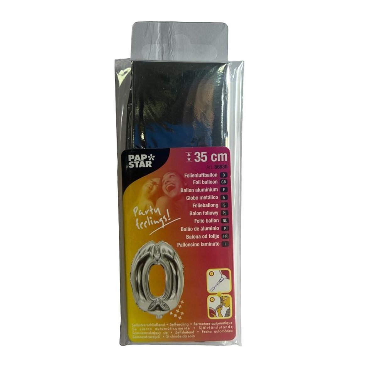 Foil Balloon 35 cm x 20 cm Silver “0” 86830 Papstar